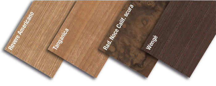 Spaziamo dai legni meno pregiati quali Tanganica, Frassino, Mogano, Toulipier, alle conifere, i ricercati esotici Wengè, Ebano, Teak, Tineo, Palissandro, Ziricote, i Nordamericani Ciliegio, Canaletto, Rovere, Acero, gli Europei col Noce Biondo, Pino, Larice, Faggio, Abete, Olivo, Cedro, Pero ed altri, Radiche di tutti i generi e quant’altro il mercato può offrire tra Africa e Asia, per finire coi ricomposti.